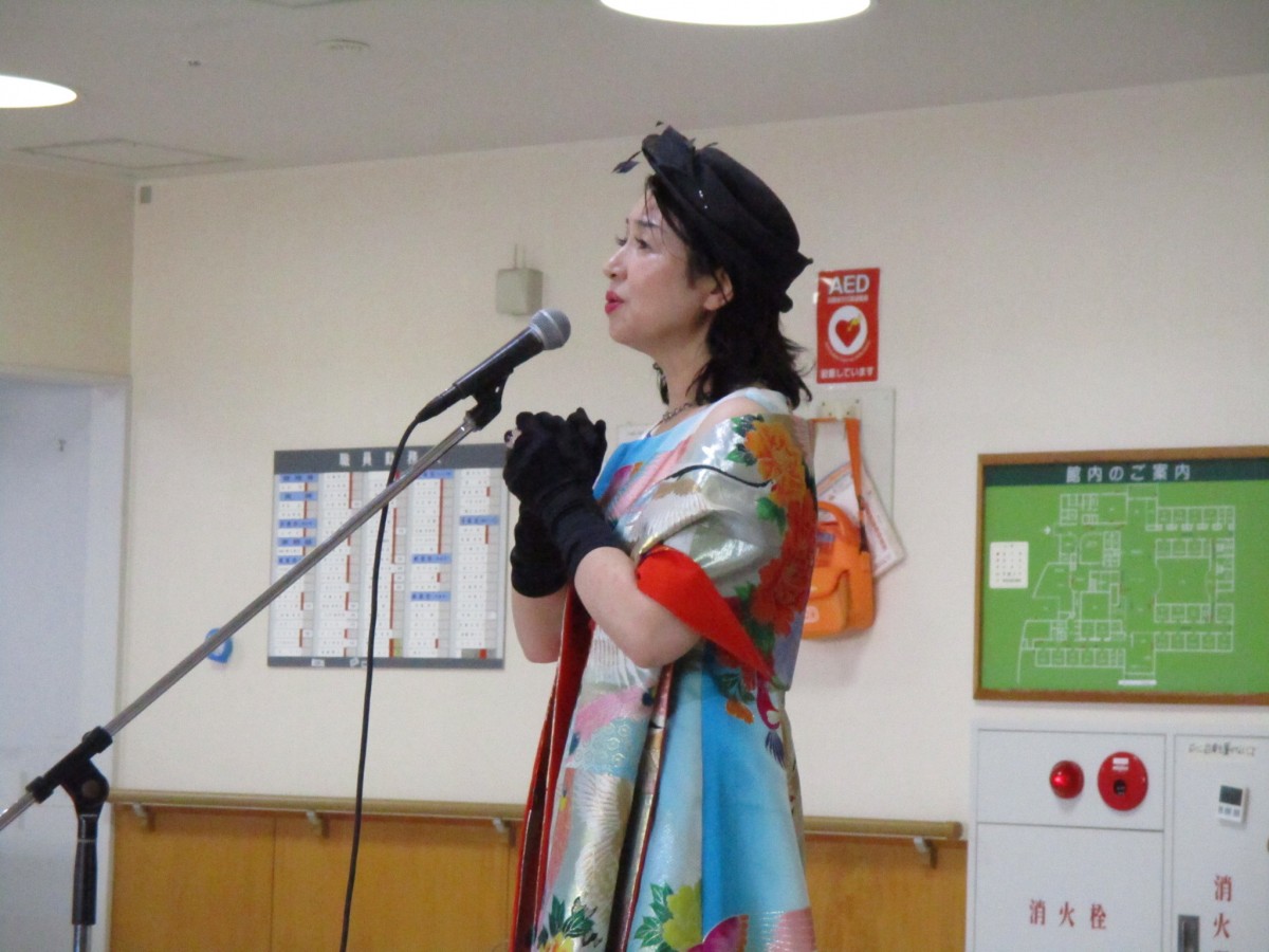2018年11月28日、『魂に響くギフトコンサートの会』の皆さまのご厚意により、施設内においてオペラコンサートが開催されました。郡山市在住のソプラノ歌手、橋本妙子様の澄み渡る、素晴らしい、まさに魂に響く歌声が響き渡り、利用者のみなさん、職員も聴き惚れていました。