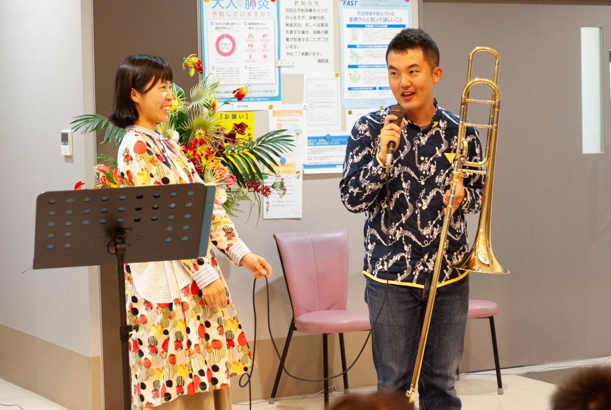 来場された、お客様や当院の患者さん、施設の利用者さんは大関さんの煌びやかな音色に魅了されているようでした。