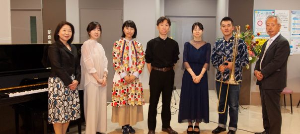 今回は、プロジェクト代表の三木 隆二郎氏とともにトロンボーン奏者の大関 一成 氏、ピアノ伴奏者 小田 美紗希 氏 をお招きして、クラシックプログラムを中心に、チェロの楽曲などもトロンボーンにてご披露いただきました。